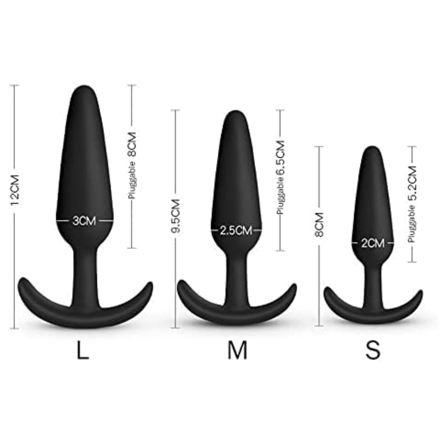 The set includes three graduated sizes—small, medium, and large—allowing users to progress at a comfortable pace. The slim design, tapered tip, and flared safety base make these plugs ideal for first-time users who want a safe, controlled, and relaxing experience.